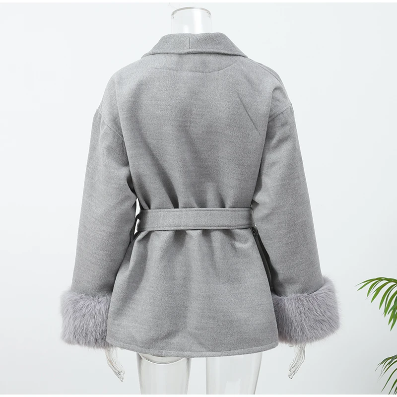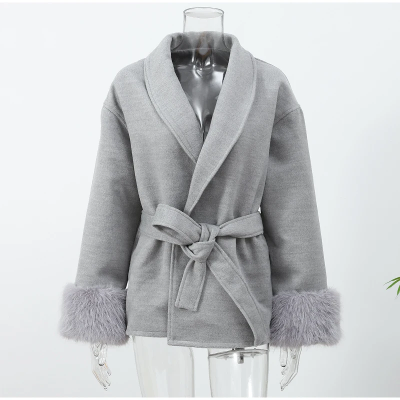 Be the first to review “Elegant Lace Up Woolen Overcoat Women Casual Lapel V-neck Full Sleeve Loose Warm Outerwears Lady New Autumn Commute Street Coat”